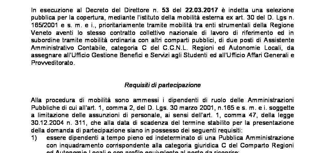 Home » Avviso pubblico di mobilità esterna – 2017 » AB AVVISO DI MOBILITA’ cat C 2017