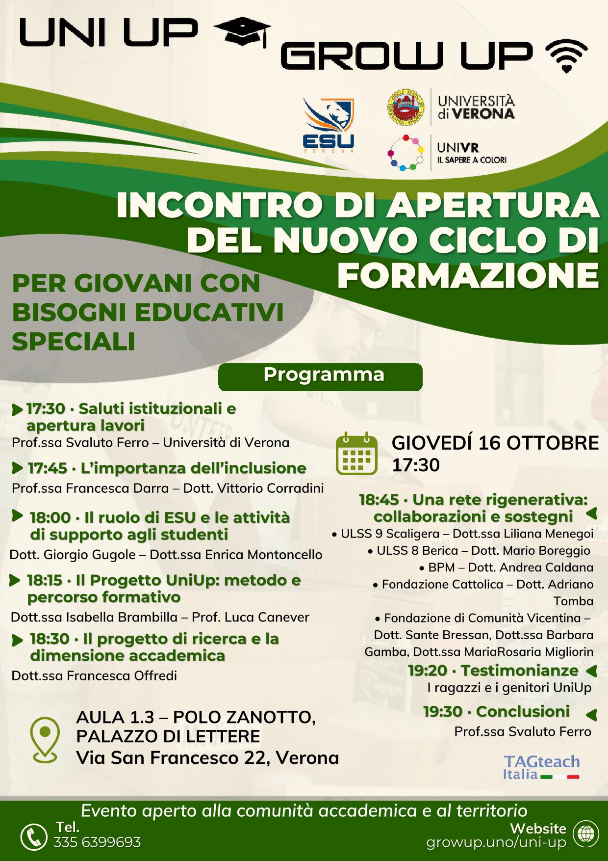 UNIUP è un progetto sostenuto da ESU Verona per giovani con bisogni educativi speciali.